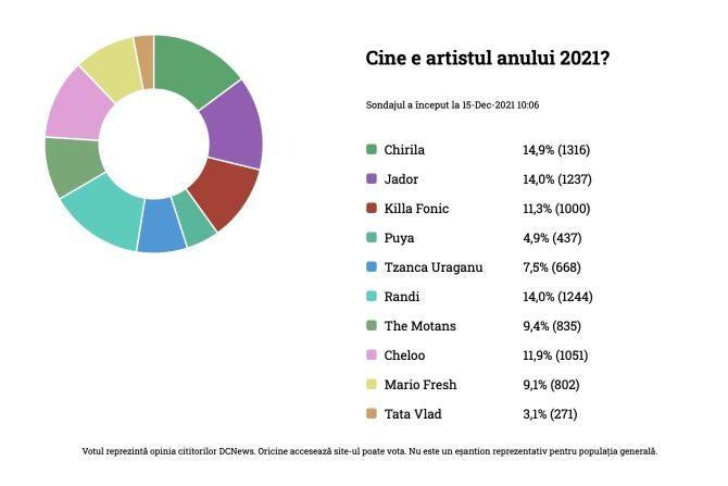 Tudor Chirilă, făcut praf de Diaspora. Jador și Randi, LUPTA momentului. Cine e artistul anului 2021, SONDAJ DC NEWS uimitor