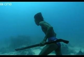 Un bărbat prinde peşti pe fundul mării fără oxigen - VIDEO