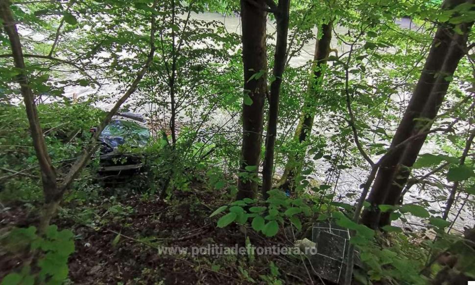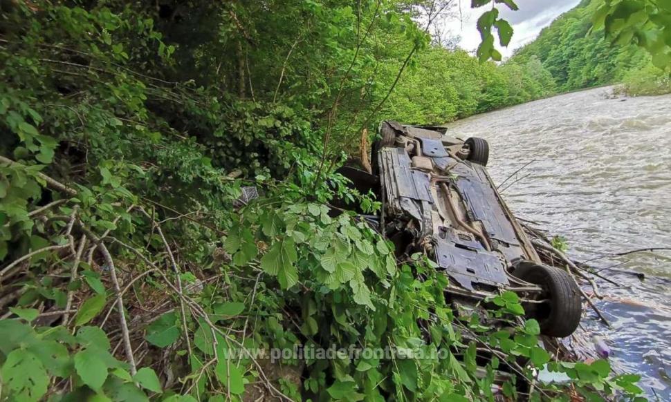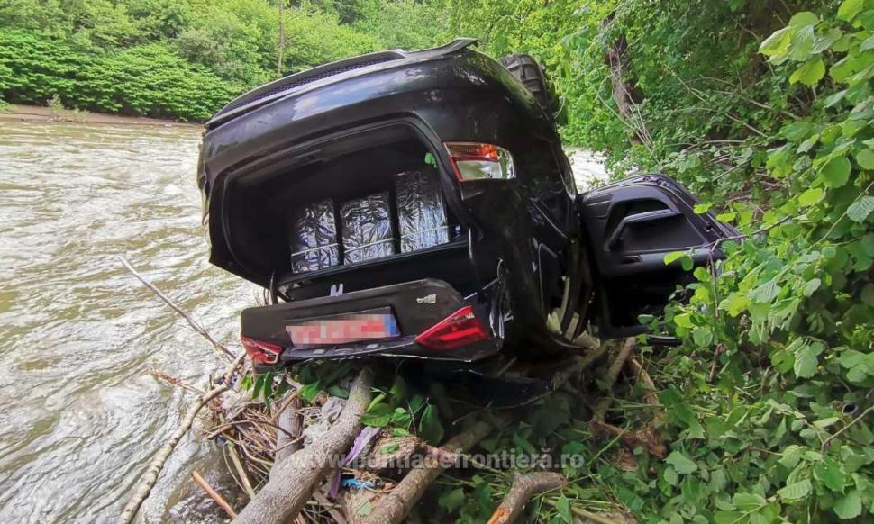 Un contrabandist urmărit de polițiști s-a răsturnat cu mașina în Râul Vișeu / GALERIE FOTO
