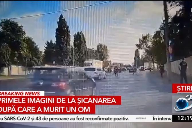 Imagini teribile - momentul în care bărbatul de pe trotinetă lovit de un motociclist ajunge în faţa maşinii
