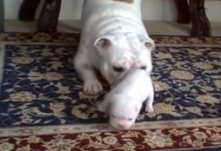 Un pui de Bulldog răspunde urât când îl ceartă mama- VIDEO