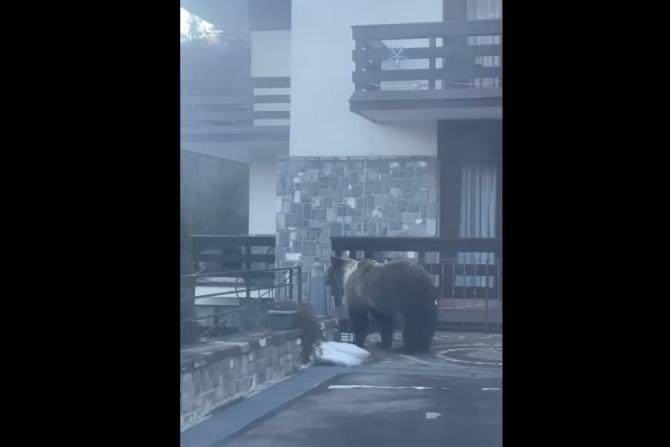Mai mulți urși au fost văzuți la intrarea unui hotel din Sinaia