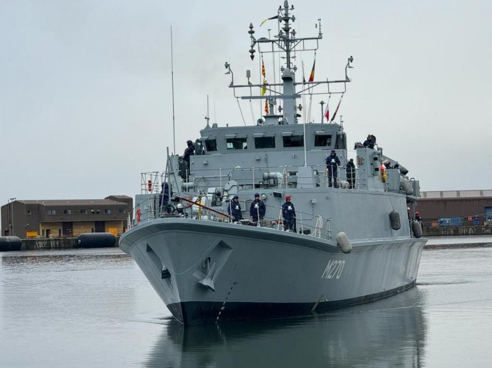 Vânătorul de mine M 270 "Sublocotenent Ion Ghiculescu" se îndreaptă spre portul militar Constanța