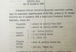 Vezi sentința care i-a condamnat pe soții Ceaușescu la moarte. Foto
