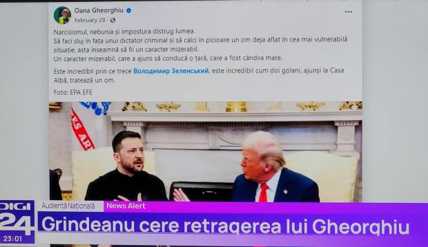Vicepremierul Oana Gheorghiu a declarat, despre președintele american Donald Trump, că ”este un politician atipic pentru America, cred că este un politician cu care nu rezonez absolut deloc, că face lucrurile într-un fel în care pentru mine este bizar, mai ales uitându-mă la America. Sper să facă ceea ce trebuie pentru America şi pentru Europa”.