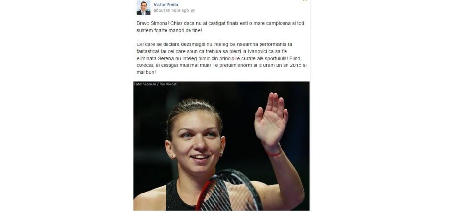 Victor Ponta despre înfrângerea Simonei Halep la Singapore