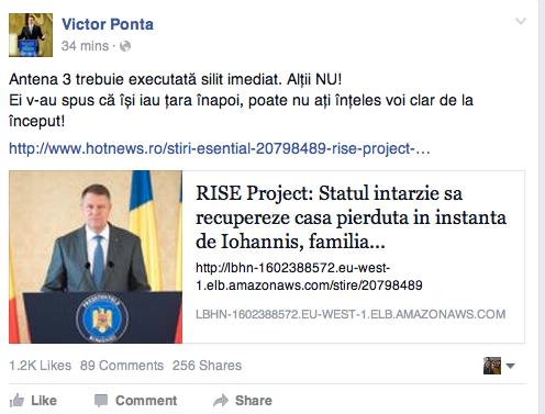 Victor Ponta, ironie totală la Klaus Iohannis: Antena 3 trebuie executată silit imediat