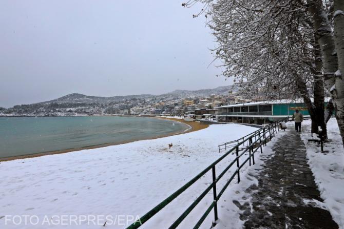 Vreme extremă în Grecia. Ninsori și vânturi puternice. Autostradă închisă