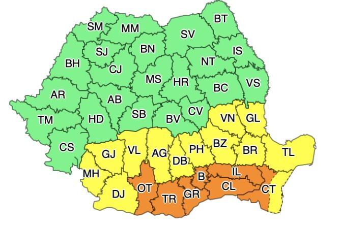 Vremea în weekend 22 - 23 iulie 2023. Cod Portocaliu de caniculă pentru Olt, Teleorman, Giurgiu, Ilfov, Călărași, Ialomița, Constanța și București. Unde se anunță furtuni