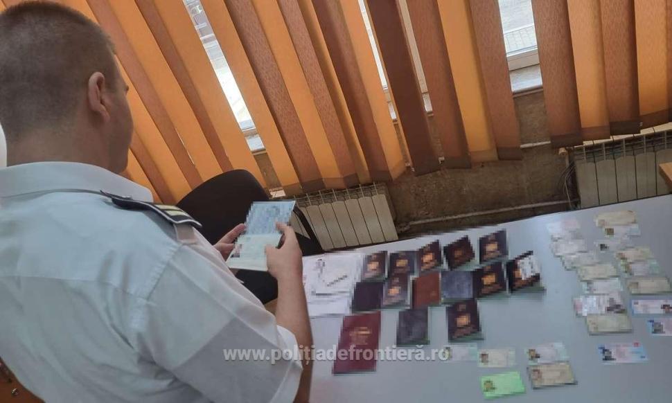 Zeci de documente de identitate, descoperite de polițiștii de frontieră într-un microbuz - Foto