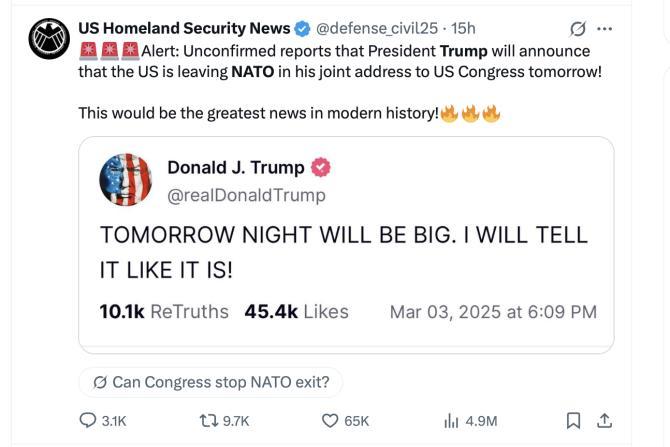 UPDATE: Zvon fals pe X: ”SUA părăsesc NATO în această noapte”/ Ultimele informații